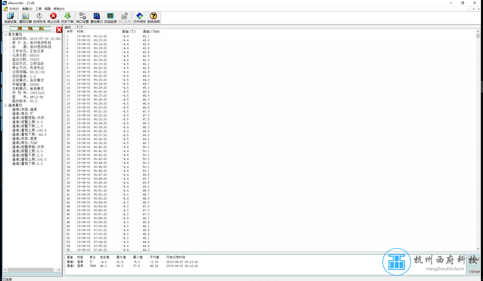 杭州西府USB型溫濕度記錄儀數(shù)據(jù)分析軟件xRecorder下載